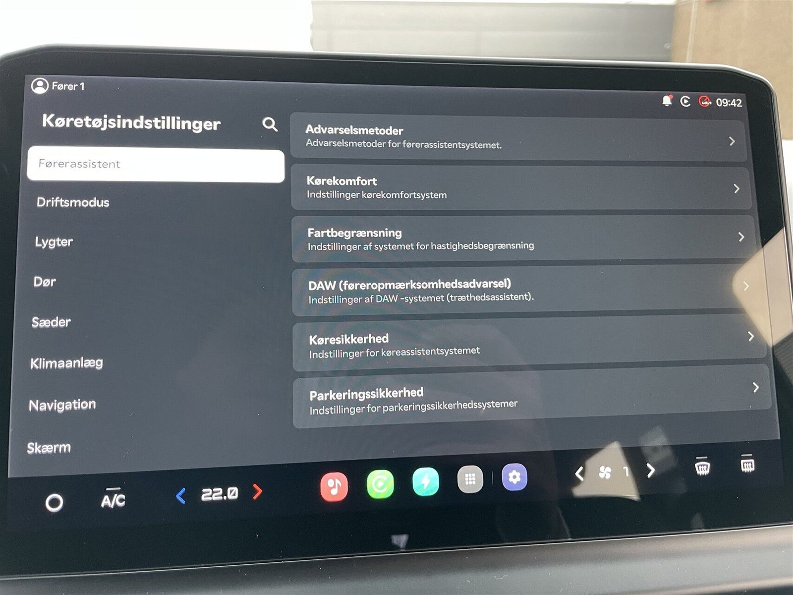 PV5 PRESTIGE Passenger - Varmepumpe, Kabinevarmer (PTC), Pre-conditioner til DC-ladning af batteri, Batterivarmer, Fjernstyret opvarmning af kabine, Kia Connect (app styring, 12,9” Touchskærm, Navigation, Ratbetjent DAB+ radio, Bluetooth, Håndfri telefon, Musikstreaming via Bluetooth, Trådløs Apple CarPlay, Trådløs Android Auto, Højtalere i for- & bagdøre, Trådløs mobilopladning, Bakkamera m. dynamisk guide, USB ladeporte, Digital instrumentering, OTA (Over The Air) softwareopdatering (1 år), V2L - 230 v udtag i kabine, Forberedt til V2X, Adaptiv fartpilot, Drive Mode Select, Paddleshifters på rattet (styrer regenerering), Elektrisk gearvælger, Auto Light Control, LED kørelys, LED forlygter, LED baglygter, Fjernlysassistent, Automatisk klimaanlæg, Luftdyser til bag, Skydedøre i begge sider, Vinduesåbning i skydedøre v. 2. sæderække, Kunstlæderkabine, Quiltet betræk, Højdejustérbare forsæder m. varme, Lommer bag på forsæder, Opbevaring under forsæder, Armlæn for, Kopholder, Foldbart 60:40 splitbagsæde, Varme i bagsæde, 4-vejs justérbart kunstlæderrat m. varme, Variabel bagagerumsbund, Bagagerumsdækken, Elektrisk bagklap, Blanksorte el-indklappelige sidespejle m. varme & LED blink, El-ruder for, Aut. nedblændeligt bagspejl, Digital Key, Multifunktionel Smart Key, Regnsensor, Opvarmede sprinklerdyser, Parkeringssensor for & bag, Indfarvede dørgreb, Skærmkanter og dørpaneler i sort plast, 16” Alufælge m. 215/65R16 sommerdæk, Airbags inkl. centerairbag mellem forsæder, ABS, ESC, EBD, Isofix m. TopTether, Intelligent skiltegenkendelse m. hastighedsassistent, Bakkestartassistent, Assistent for bagved krydsende trafik, Aktiv blindvinkelassistent, Aktiv overvågning af føreruopmærksomhed, Udvidet træthedsregistrering, Manuel hastighedsbegrænser, Motorvejsassistent, Vognbaneassistent, Udvidet vejbaneassistent m. Hands-On-Sensor, Advarsel for glemte bagsædepassagerer (uden sensor), Elektrisk P-bremse m. autohold, Dæktryksovervågning, Multikollisionsbremse, E-Call (nødopkald, Automatisk nødbremsesystem